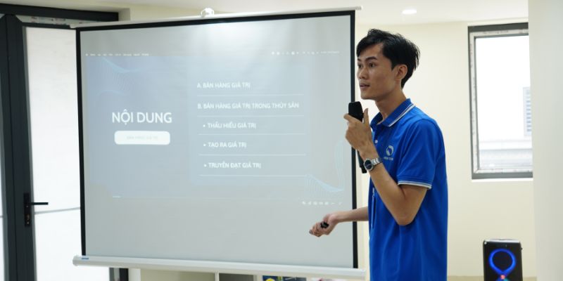 Trong bối cảnh ngành thuỷ sản ngày càng cạnh tranh, việc xây dựng một đội ngũ nhân viên có tư duy hiện đại và phương pháp phục vụ chuẩn mực trở thành yếu tố then chốt giúp doanh nghiệp duy trì lợi thế. Nhận thấy tầm quan trọng đó, Ban lãnh đạo Công ty Cổ phần Công nghệ & Dịch vụ Thuỷ Sản 365 đã tổ chức buổi đào tạo chuyên sâu với chủ đề “Bán hàng giá trị” dành cho cán bộ công nhân viên trên toàn hệ thống. Đây là hoạt động nằm trong chiến lược phát triển nội lực và xây dựng văn hoá học tập bền vững của công ty.